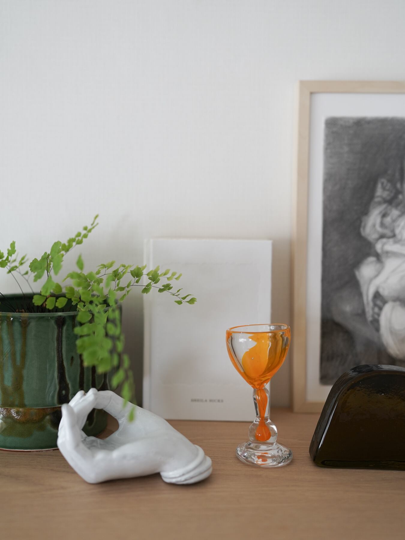 厚めのガラスならではのずっしりとした重みがあります。そのままオブジェとして、花器として、アクセサリーのディスプレイなどにも。強いお酒を入れるのもいいかもしれません。
