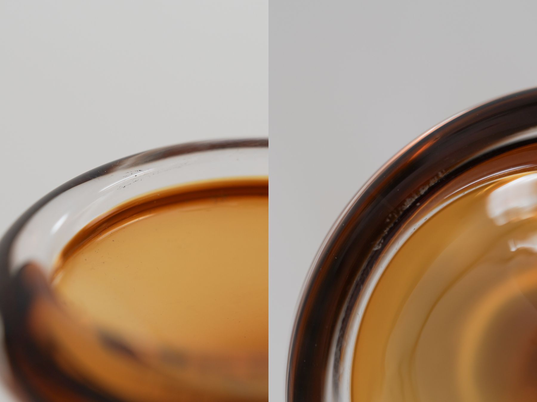 気泡や制作の過程で入る黒点・微細な傷などが見られます。