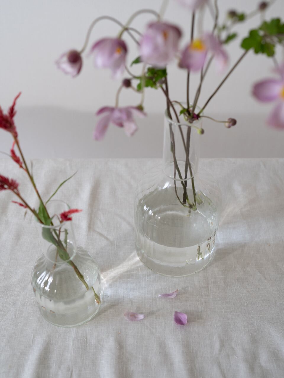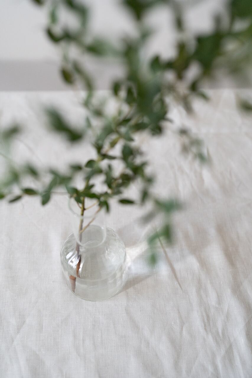 口が細くお花は一輪でもサマになるので気軽に活けられます。