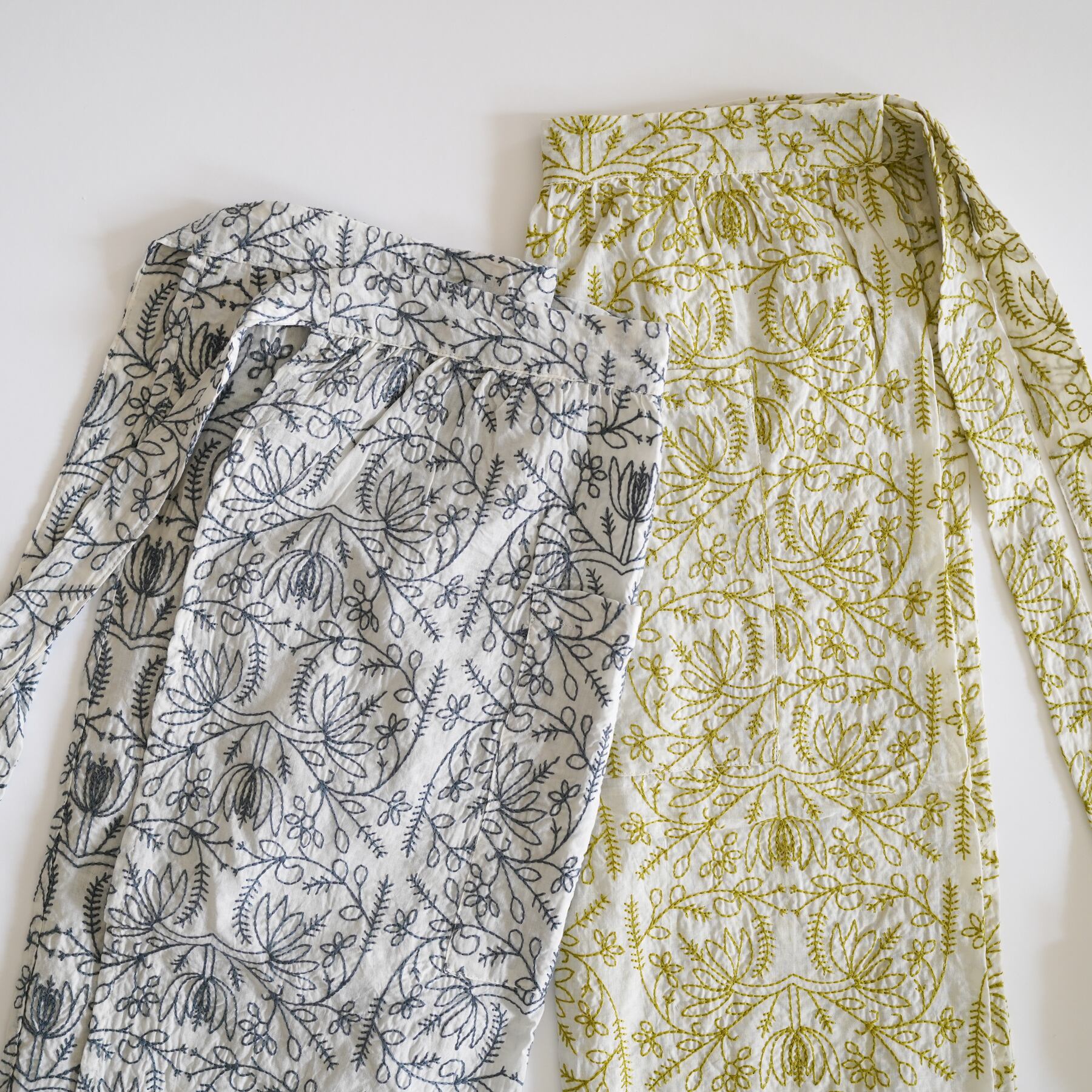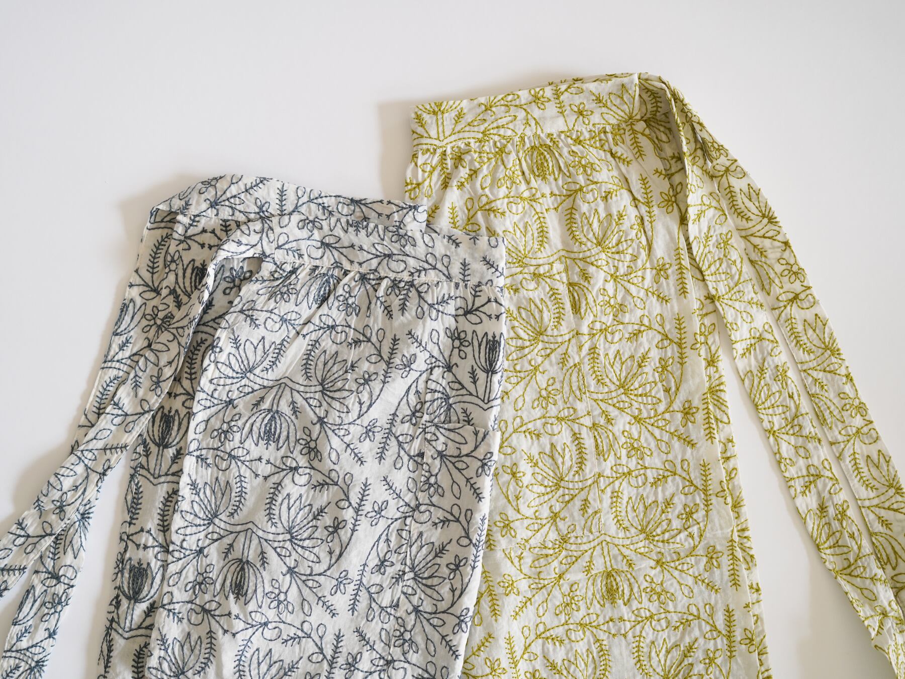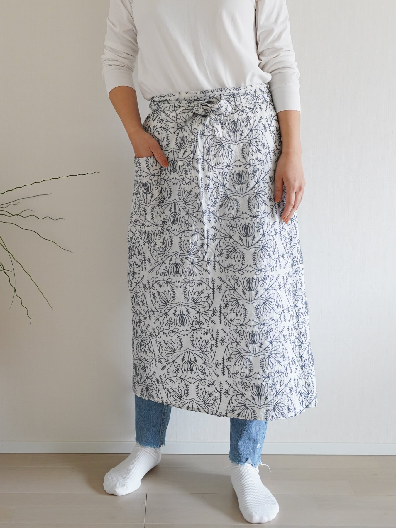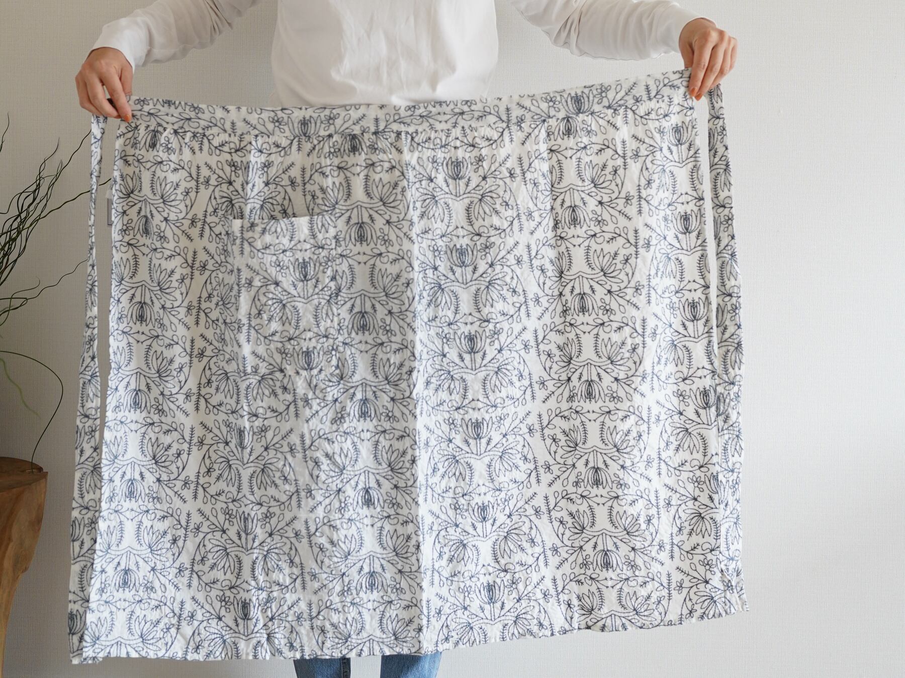 刺繍のお洋服に何故か惹かれるように、気分の上がるテクスチャを、毎日使うエプロンでも。