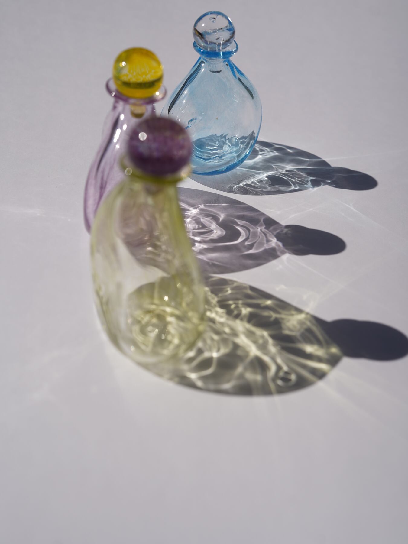 宙吹きガラスのゆらぎと、手仕事のあたたかみ。