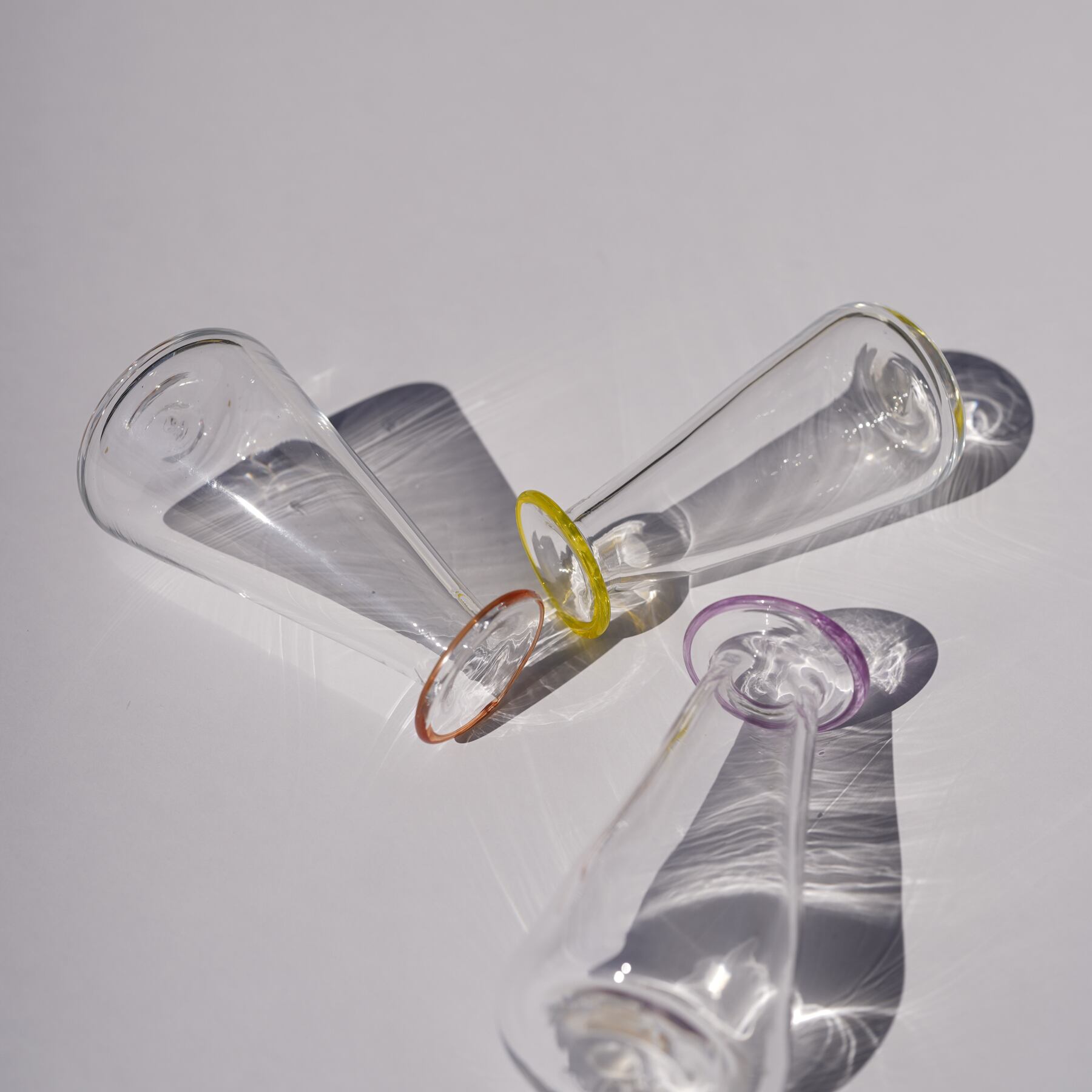 サッとペンで描いたような縁取りの色ガラスと、透明なガラスのコンビネーション。