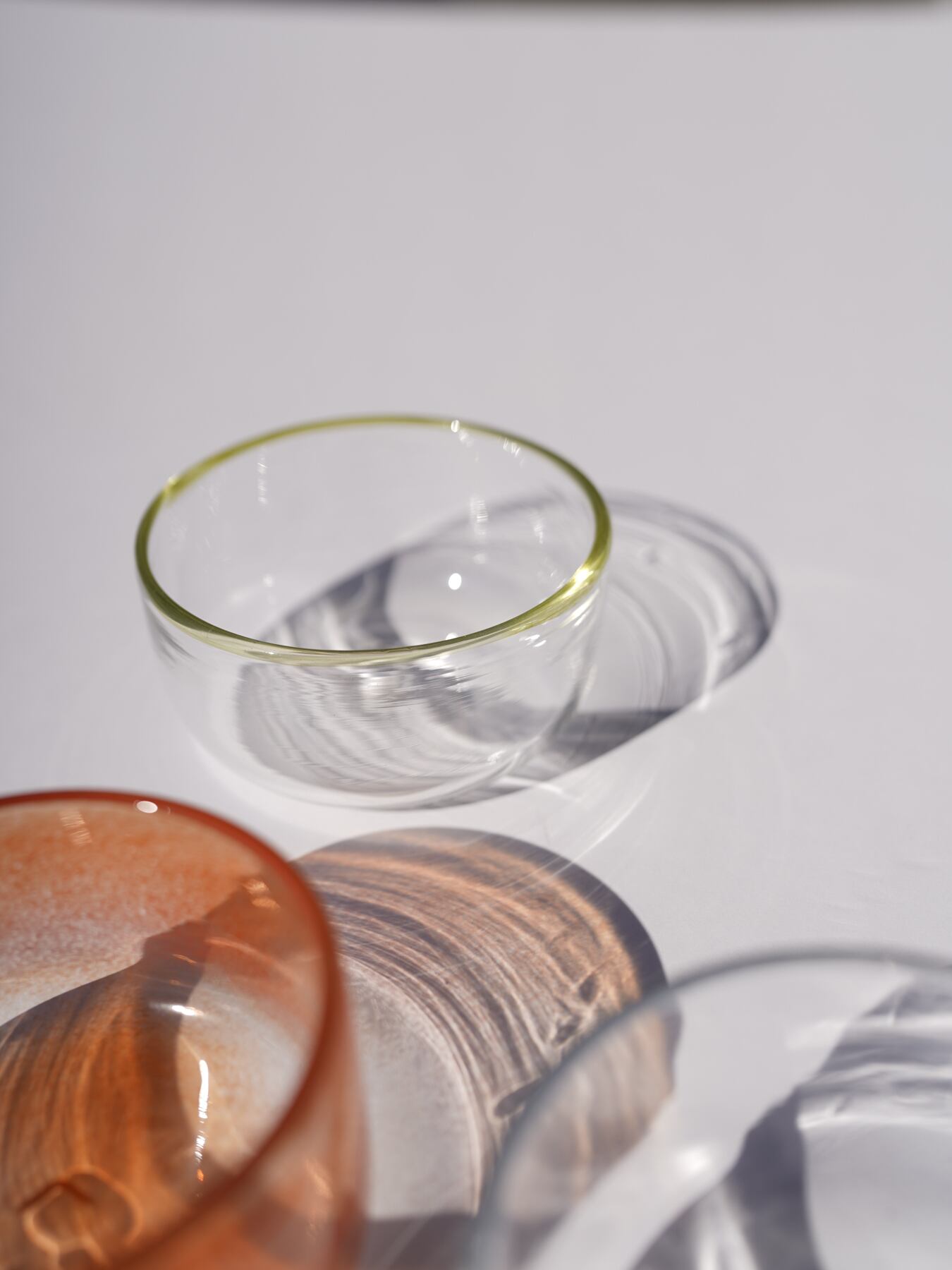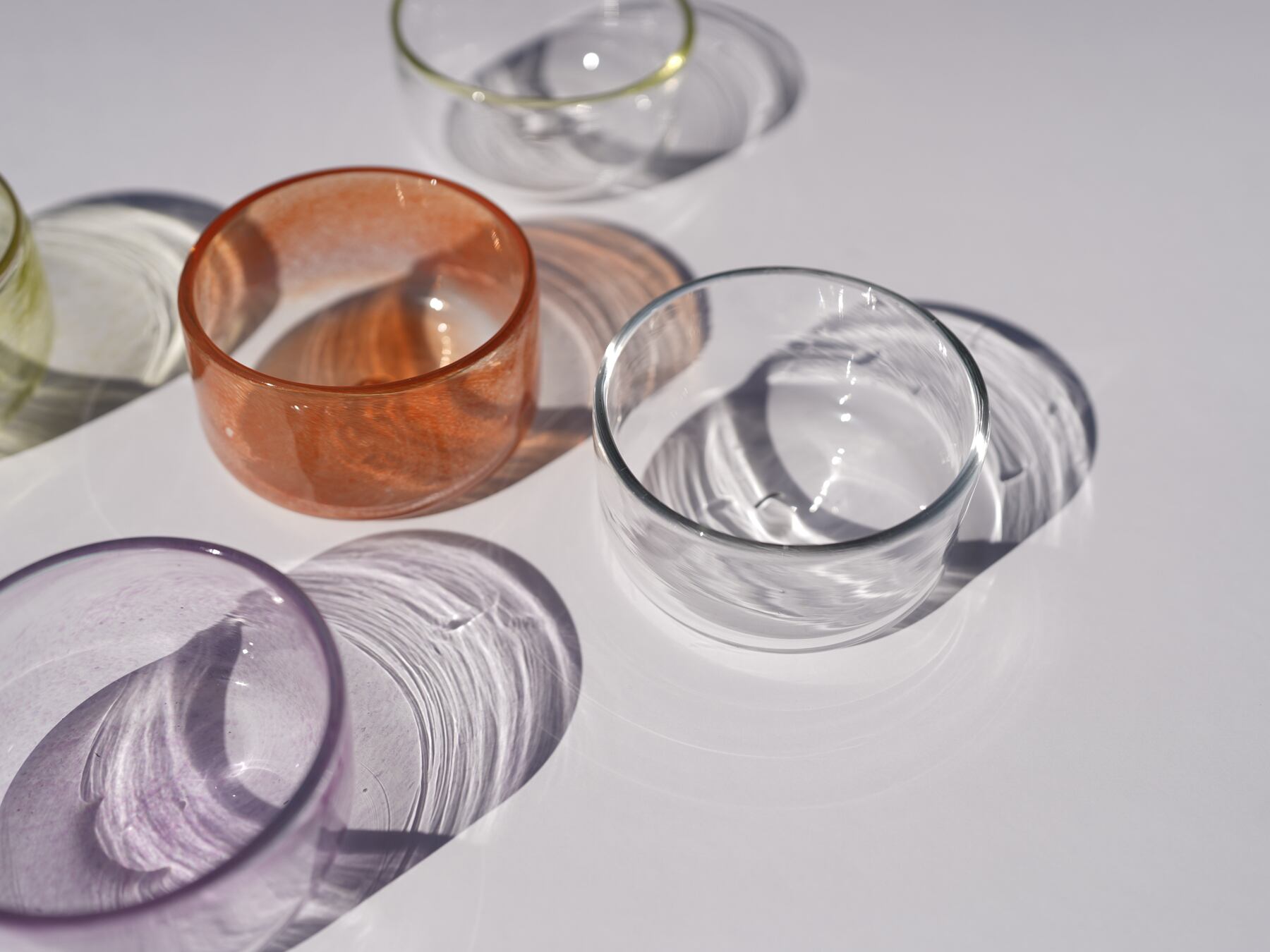 宙吹きガラスのゆらぎと、均一になり過ぎない濃淡のある、手仕事のあたたかみ。