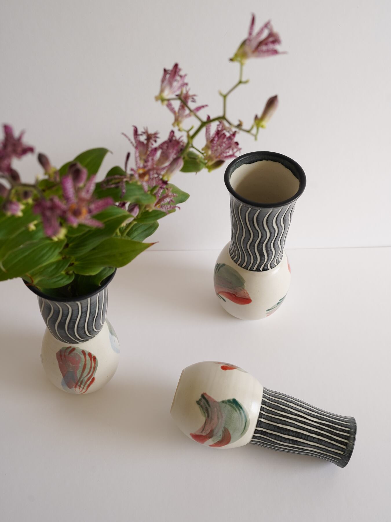 山田賀代さんの、モダンさとクラフト感両方を持ち合わせた絵付のシリーズ。