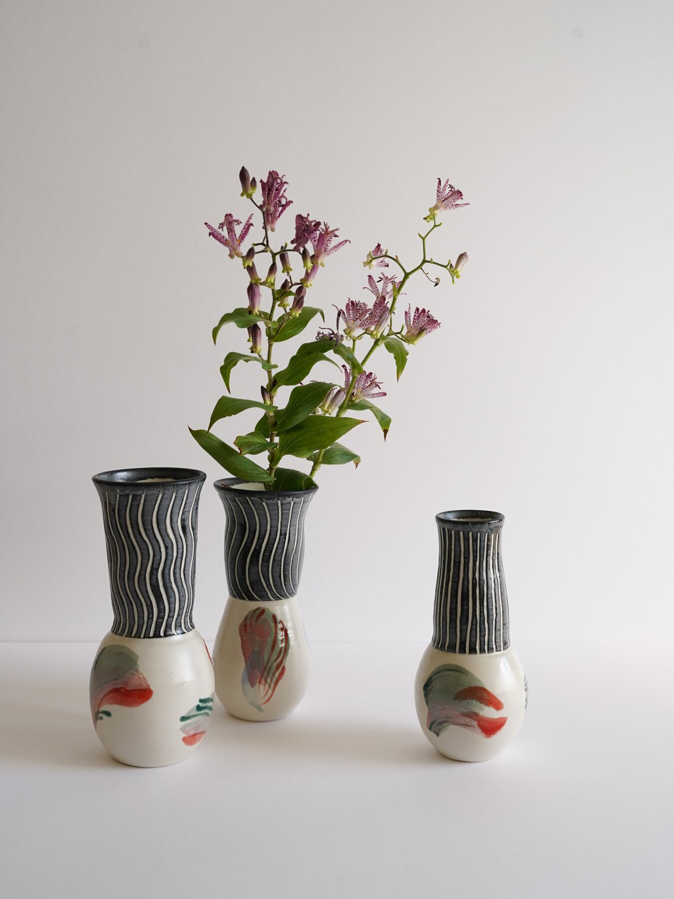 山田賀代さんの、モダンさとクラフト感両方を持ち合わせた絵付のシリーズ。