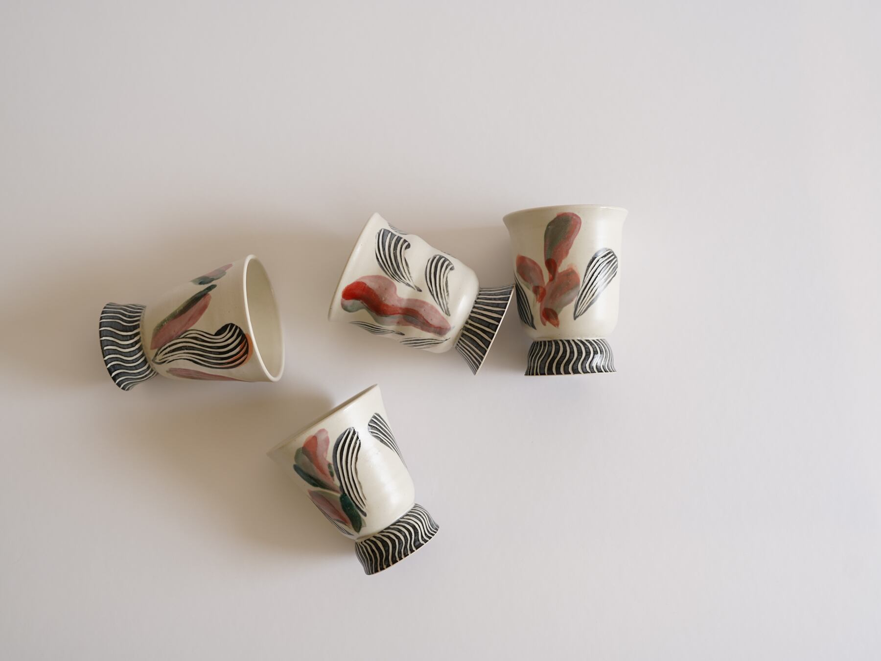 山田賀代さんの、モダンさとクラフト感両方を持ち合わせた絵付のシリーズです。
